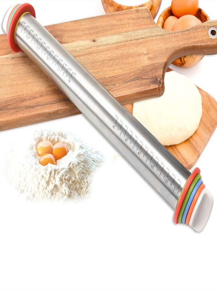 4 Size Rolling Pin Adjustable Stainless Steel Thickness Ring Dough Roller With Scale Rolling Pin Pastry Dough Roll Baking ToolFeatures:1.brand new high quality!2. This product is made of #430 stainless steel + PP material resin; non-toxic and harmless; green and environmentally friendly; ensuring safe use.3. Wide range of applications. Flour; Italian flour; soft meat; garlic rolling and hard objects are the kitchen must be nailed.4. Product Features: Suitable for flour; pasta; soft meat; garlic rolling; and hard objects.5. Cleaning method: can be put into the dishwasher; ultrasonic cleaning machine or direct hand washing.6. 2/3/6/10MM4 thickness adjustment rings; but the dough thickness is uniform.Item details:Material: PP & stainless steel/SiliconeSize: 44*7*7cm/60*40cmFeatures: Adjust thickness / with scale / high temperature resistancePackage List:1pcs*Rolling Pin/baking tray/suitNote:1.Please refer to measurement. Slight measurement errors are allowed within the normal range.2.There may be a slight color difference due to the monitor; camera or other factors; please refer to the actual product.3.If you have any questions about the product; please contact us; we will patiently answer for you!4.Follow the store have discount5. If you need customization or large quantities; please contact us online or email to1276148026@qq.com; we will give you the best price. (Thanks and hope you have a happy shopping.)