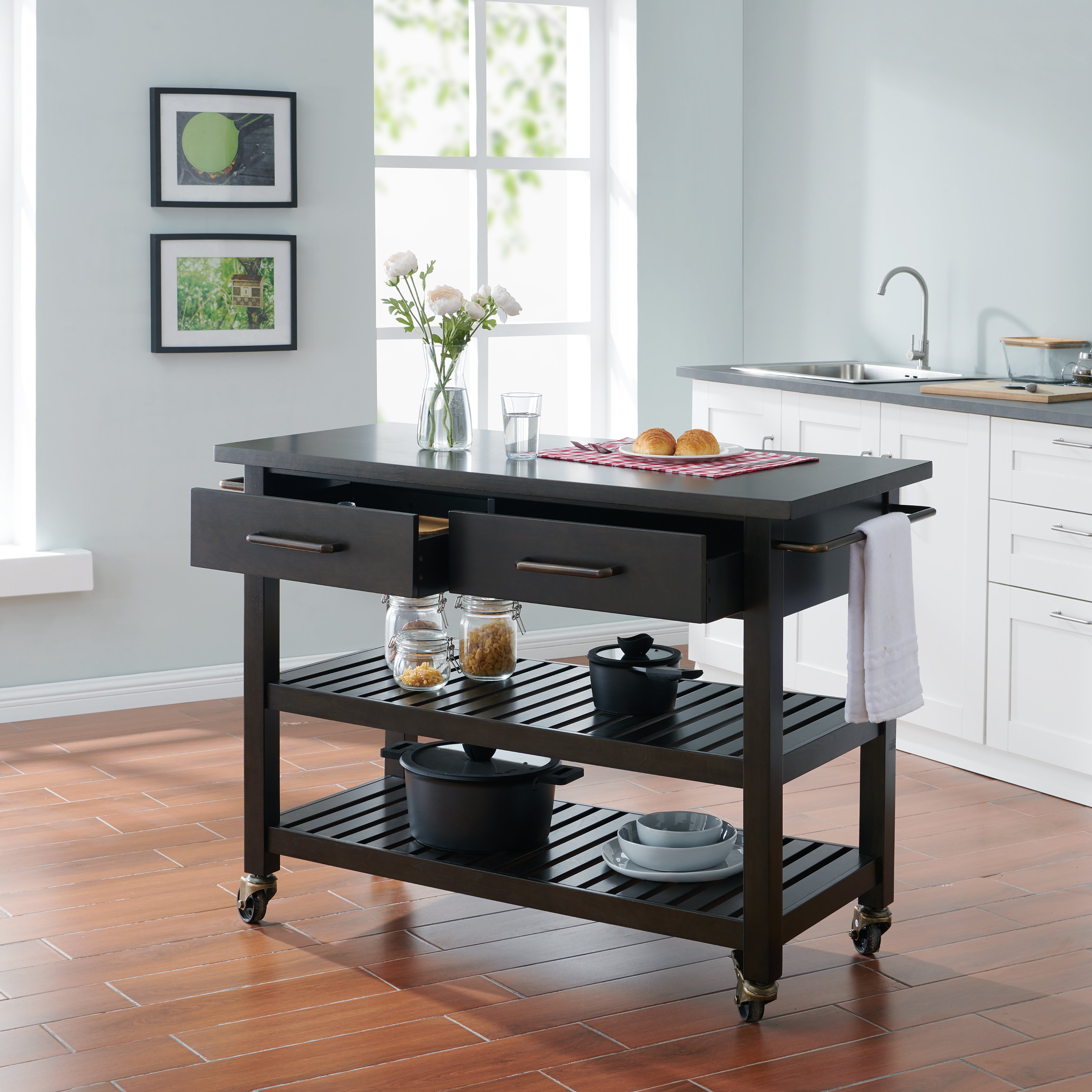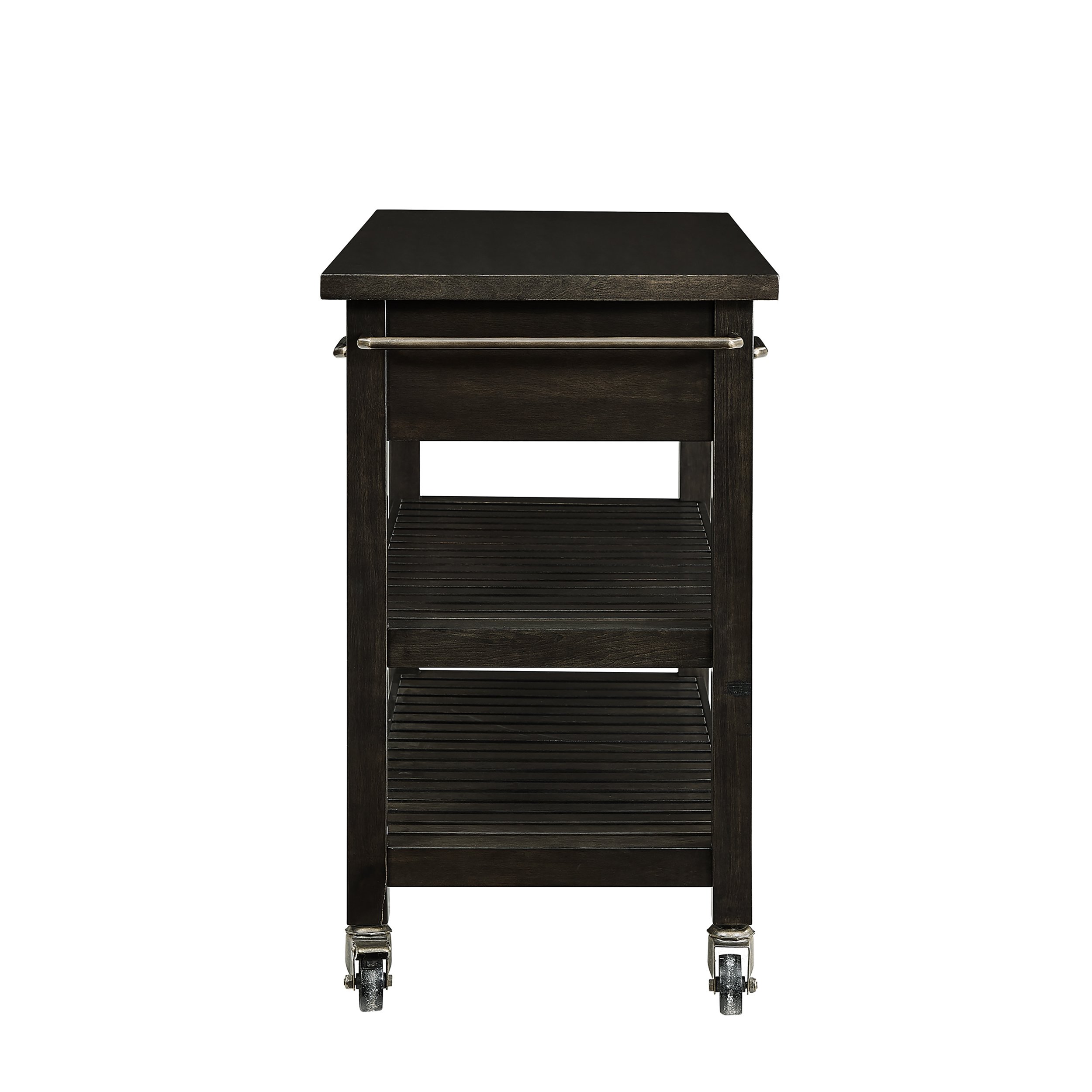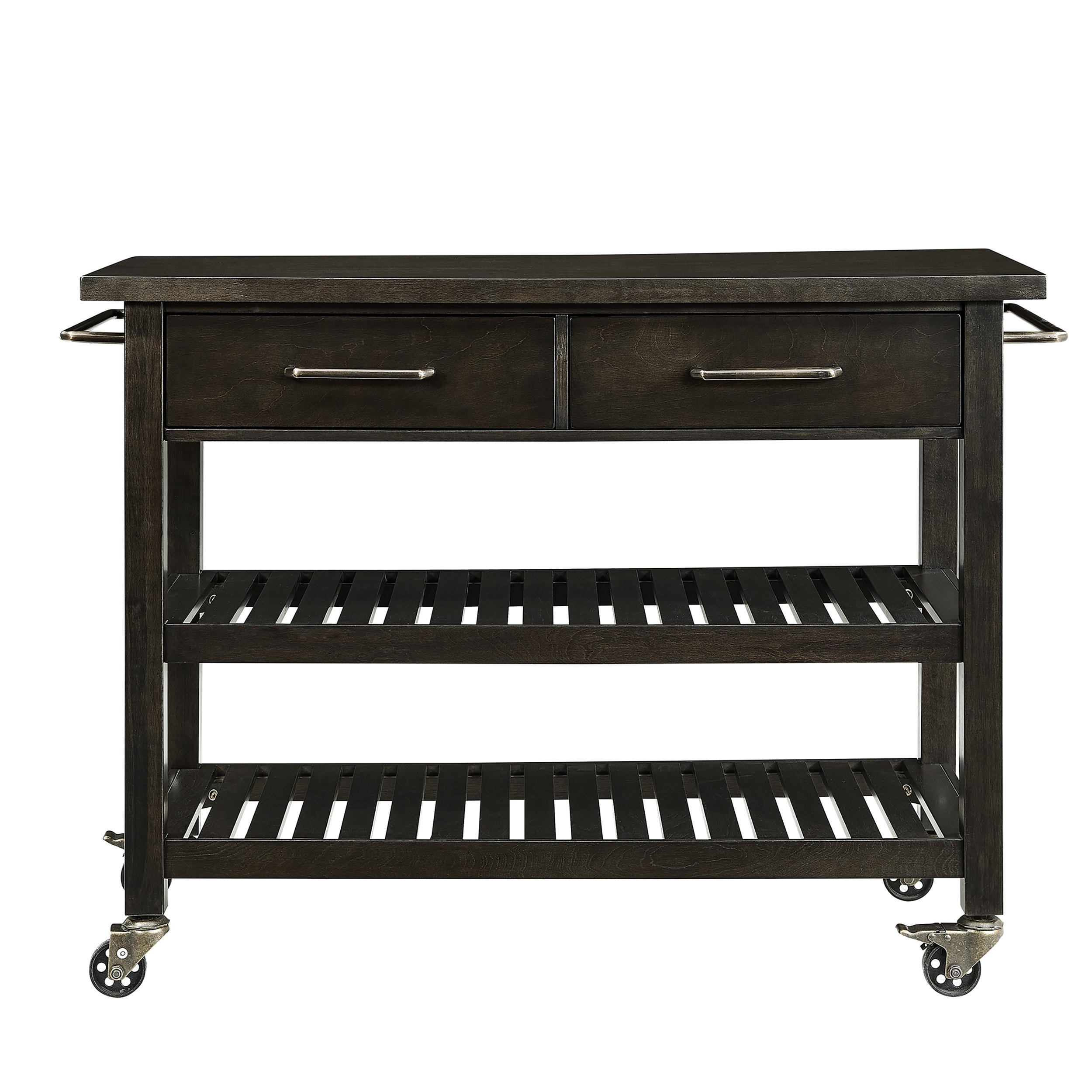 Whip it up. Put on your apron and get cooking with the Havelock Kitchen Island. Two layers of slatted shelving let you reserve dishes; pots and pans; or flatware for whenever you need them; and two storage drawers keep smaller utensils out of sightbut always handy. Serve up a delicious buffet or a selection of snacks on the roomy countertop; and roll the whole unit to any room. Order up this island and make it the main course of your kitchen or mudroom.