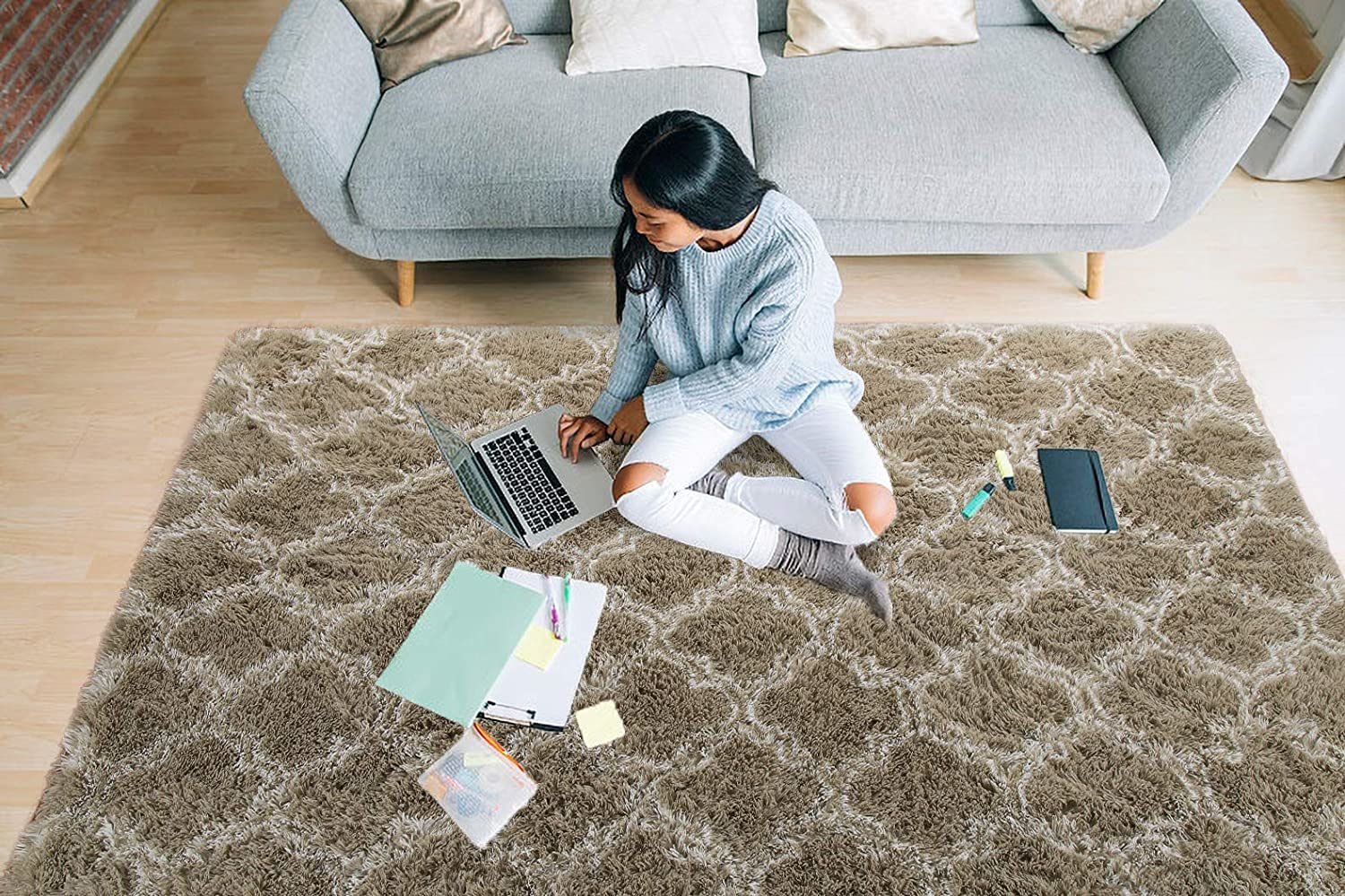 1.Extra Soft Area Rug: The area rug is incredibly soft and features a top layer of fluffy material with sponge interlayer, which is softer and more luxurious underfoot; Its comfy fabric is very family-friendly and ideal for bedroom, living room