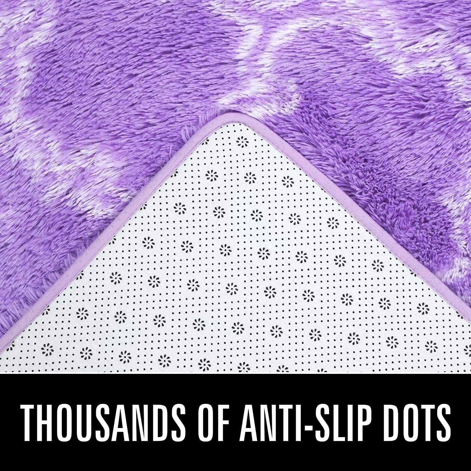 3.Thousands of Strong Dots: Our fluffy carpet is back with thousands of strong grip dots that help hold in place on wooden or other floor, and hold up even with kids and pets; This fluffy carpet is a great decor for the kids bedroom, nursery and dorm