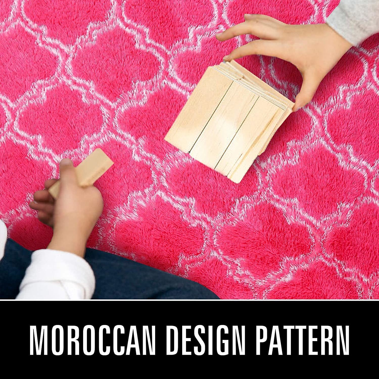 3.Thousands of Strong Dots: Our fluffy carpet is back with thousands of strong grip dots that help hold in place on wooden or other floor, and hold up even with kids and pets; This fluffy carpet is a great decor for the kids bedroom, nursery and dorm