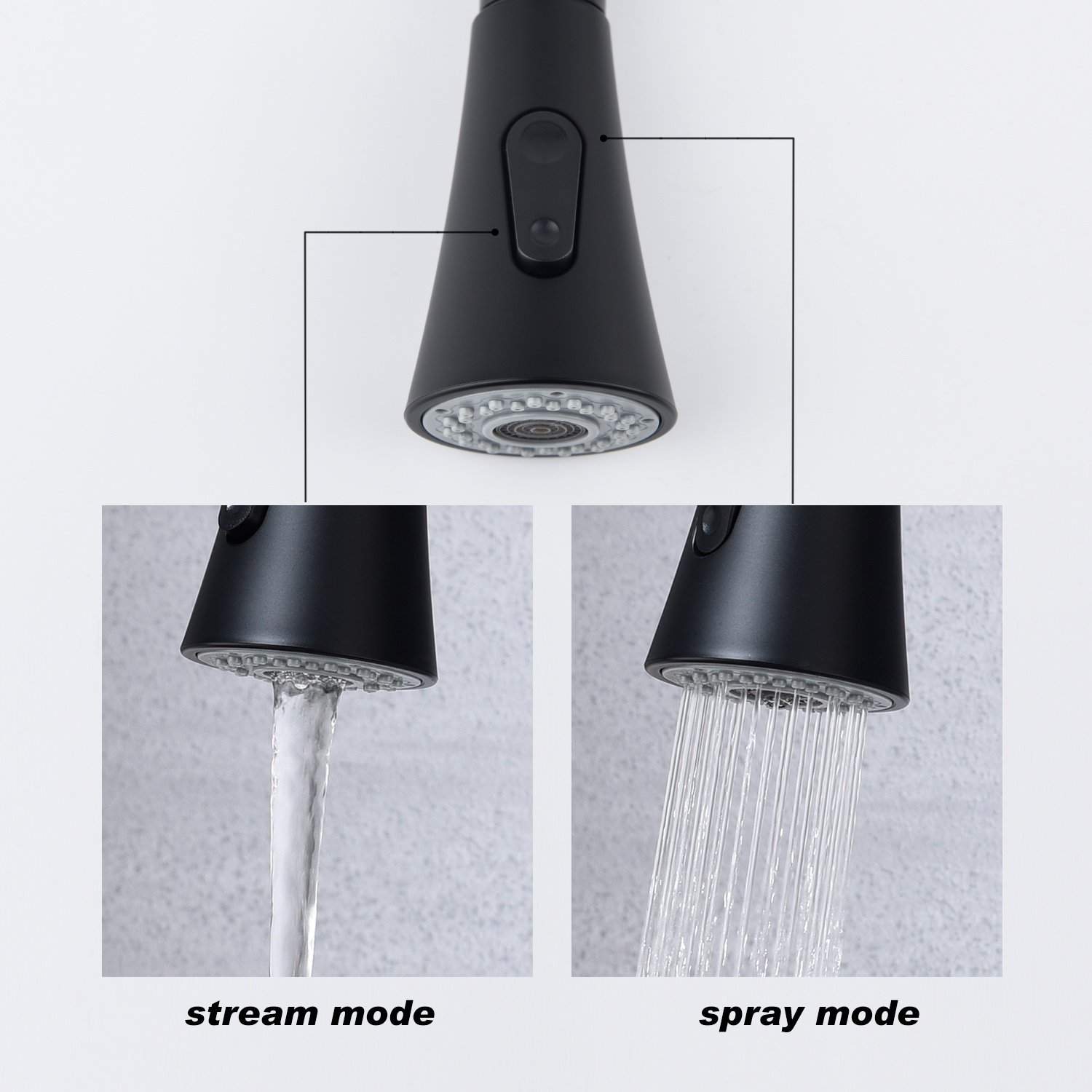 Features:This kitchen faucet design makes your kitchen room simple and fresh; easy to match with most sinks. The single handle can easily control the water temperature and flow. The high arc 360 degree rotating nozzle provides a full range of cleaning channels. The nozzle always retracts into the nozzle after each use. Excellent corrosion resistance and anti-rust treatment prevent dirt from sticking to the surface of the faucet. It is enough to clean the faucet with a cloth for daily use.Easy to install---pull down the hose pre-installed in the kitchen faucet and the water pipe hose together to save a lot of time under the sink; no plumber is required; and DIY installation can be completed within 30 minutes.Specifications:Style: Kitchen FaucetValve : Ceramic ValveWater Mode : Flow/SprayWater Function : Mixing Hot And ColdInstallation Type : Single HoleTotal Height : 16.14 InchesSpout Height : 8.66 InchesSpout Reach : 9 InchesNet Weight:5.18 poundsGross Weight:5.51poundsPackage Dimensions: 22.83 x 10.23 x 3.14 inchesColor: Matte BlackStyle: ContemporaryMaterial: stainless steelInstallation Method: Surface-MountedFlow Rate: 1.8 Gallons Per MinuteNumber Of Holes: 1Flush Type: Stream/SprayHandle/Lever Placement: RightNumber of Handles: 1Handle Material: MetalSwitch Style: Toggle