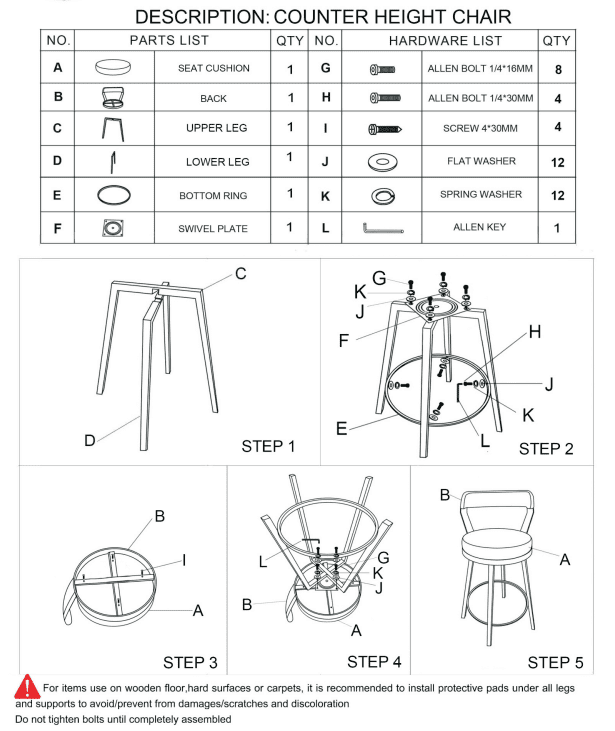 PRODUCT FEATURES: -• Country of Origin: China• Metal base• Dark gray finish• Faux leather upholstery• 360-degree swivel• Counter height design• Fabric Color: White• Fabric Content: 100% polyurethane• Fabric Cleaning Code: Upholstery (X)PRODUCT DESCRIPTION: -Perfectly styled for your casual dining space is the Appert Collection. This 24-inch counter height chair offering features a dark gray metal base that serves to support the white faux leather round swivel seat. Allowing for perfect placement within your space; the Appert Collection is offered in a 29-inch pub height and 4 additional colors – black; brown; gray and red.PRODUCT DIMENSIONS: -Overall Dimension: 20.5" x 23.5" x 35.5"HSeat Width: 17"Seat Depth: 17"Seat Height: 25.5"Listing Includes: - Set of 2 Counter Height Chairs Only.Simple Assembly Required.Shipment Service:Shipping Service Include Curb Side Delivery with Free Lift Gate Service.NOTE: No Inside Home Delivery.