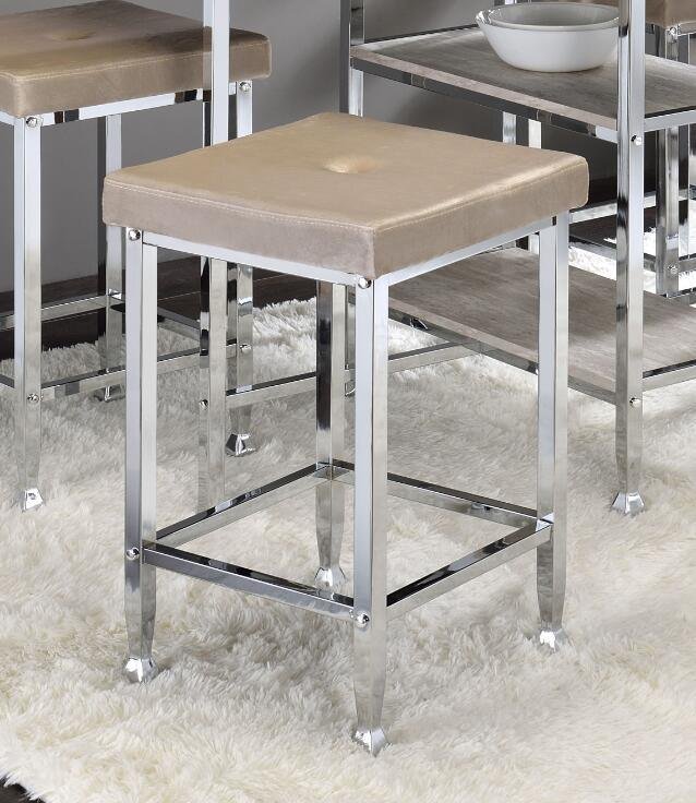Raine Counter High Stool; Beige Velvet & Chrome Finish 74007 Raine Counter High Stool; Beige Velvet & Chrome Finish 74007 Raine Counter High Stool; Beige Velvet & Chrome Finish 74007