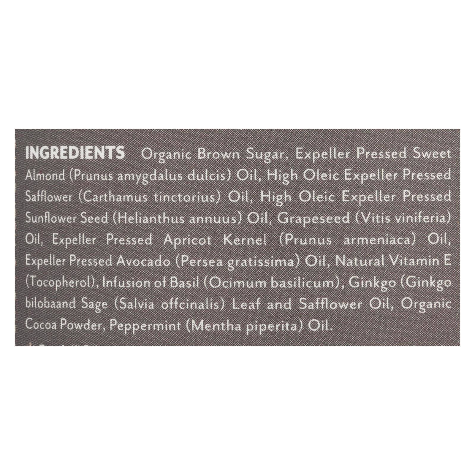 Pamper your skin and indulge your senses with the rich, delicious blend of chocolate mixed with peppermint.Created to remind us of the importance of indulging ourselves from time to time, this gently exfoliating and deeply moisturizing organic brown sugar scrub will leave your skin and senses refreshed. Our uniquely rich, organic, Ayurvedic oil blend mixed with organic brown sugar, contains natural fatty acids that help feed the skin's surface. These nutrients help create greater elasticity, lock in moisture and firm up the surface of the skin, reducing signs of aging