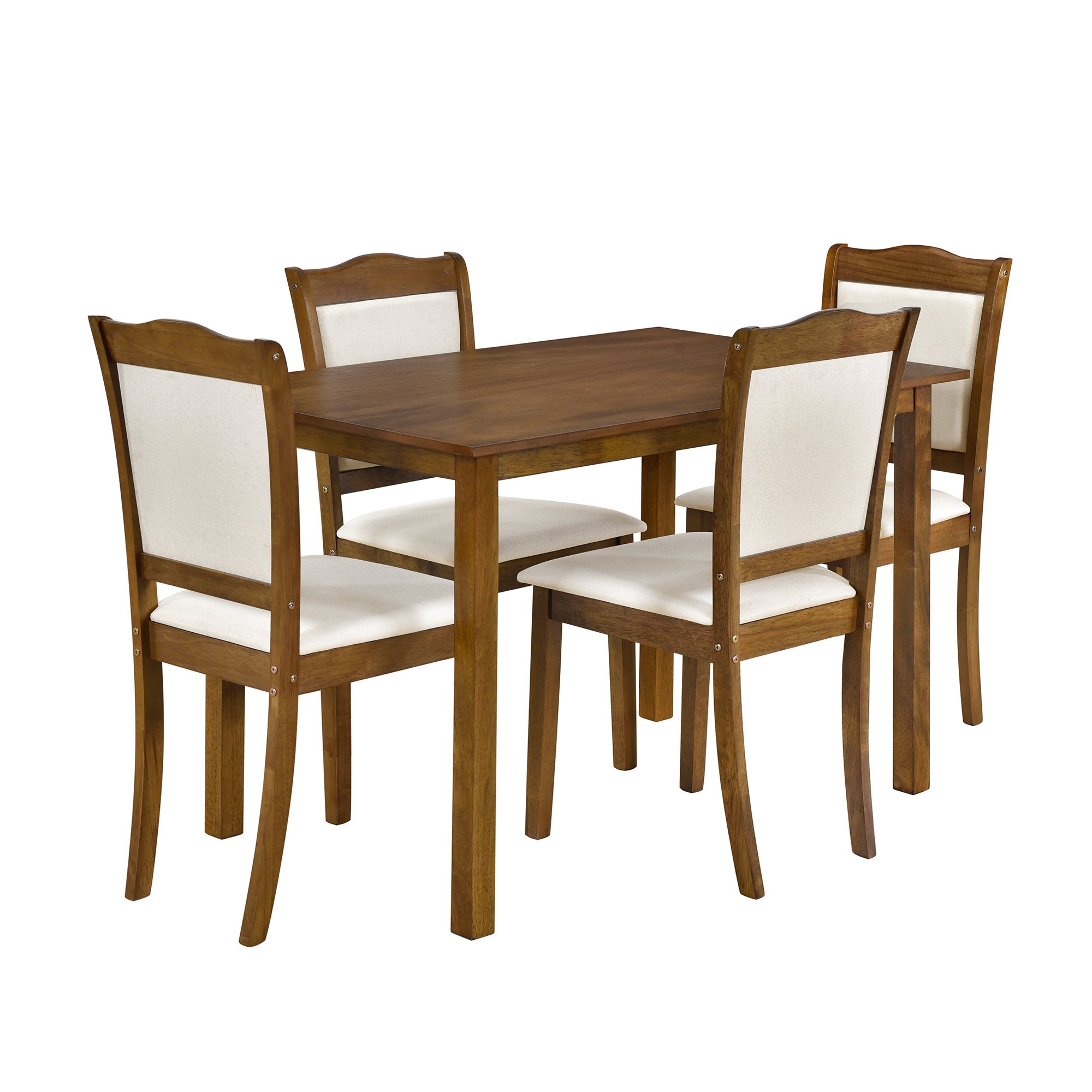 TREXM 5-Piece Wood Dining Table Set Simple Style Kitchen Dining Set Rectangular Table with Upholstered Chairs for Limited Space (Walnut)